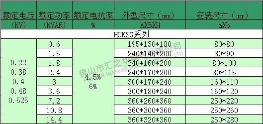 CKSG型,220V系統,三相,XL/XC=6%,匹配電容器電壓:250V